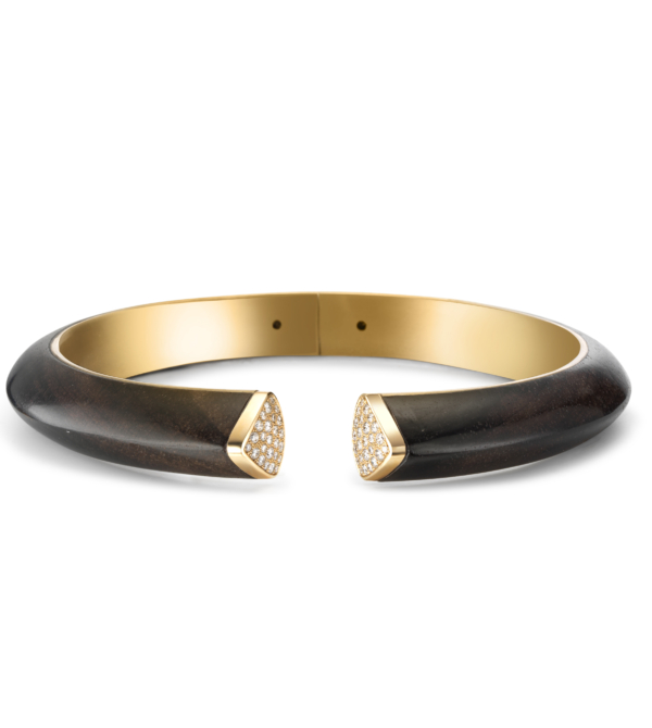 Ebony wood and gold bracelet with encrusted diamonds. Spring opening system with clasp.