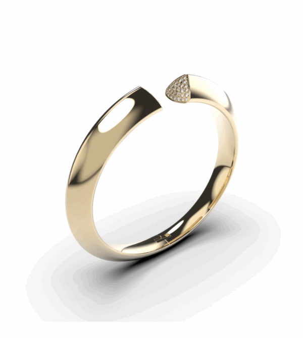Bracelet in ebony wood with diamond-encrusted ends.Spring opening system with clasp.18 carat gold and diamonds.Stone: 50 diamonds 0.58 carats, brilliant cut FG-VS (1-1.65 mm). -