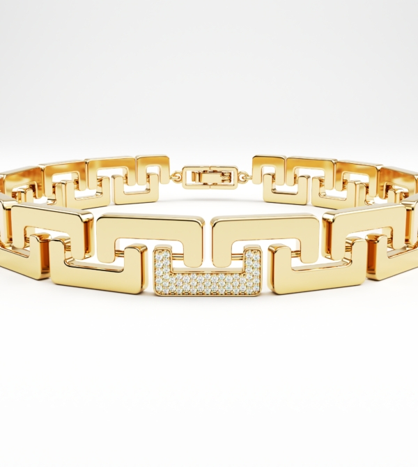 Bangle Nexus is a bold architectural bracelet crafted in 18k gold, articulated through geometric links and highlighted with a diamond-set central element.