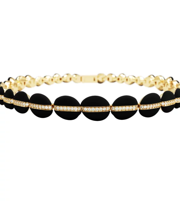 18k gold · Ebony wood · 50 diamonds · 0.58 ct · brilliant cut (FG–VS) · Spring opening system with clasp