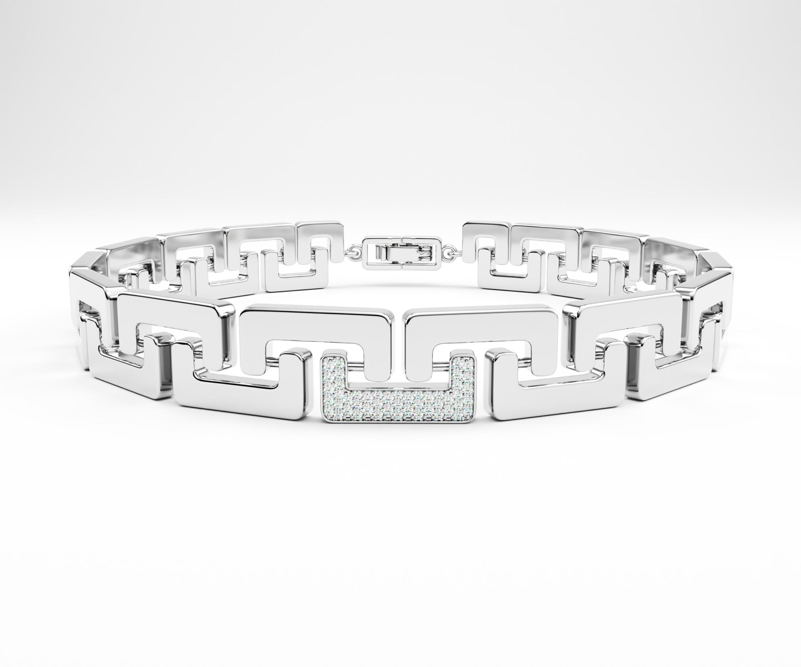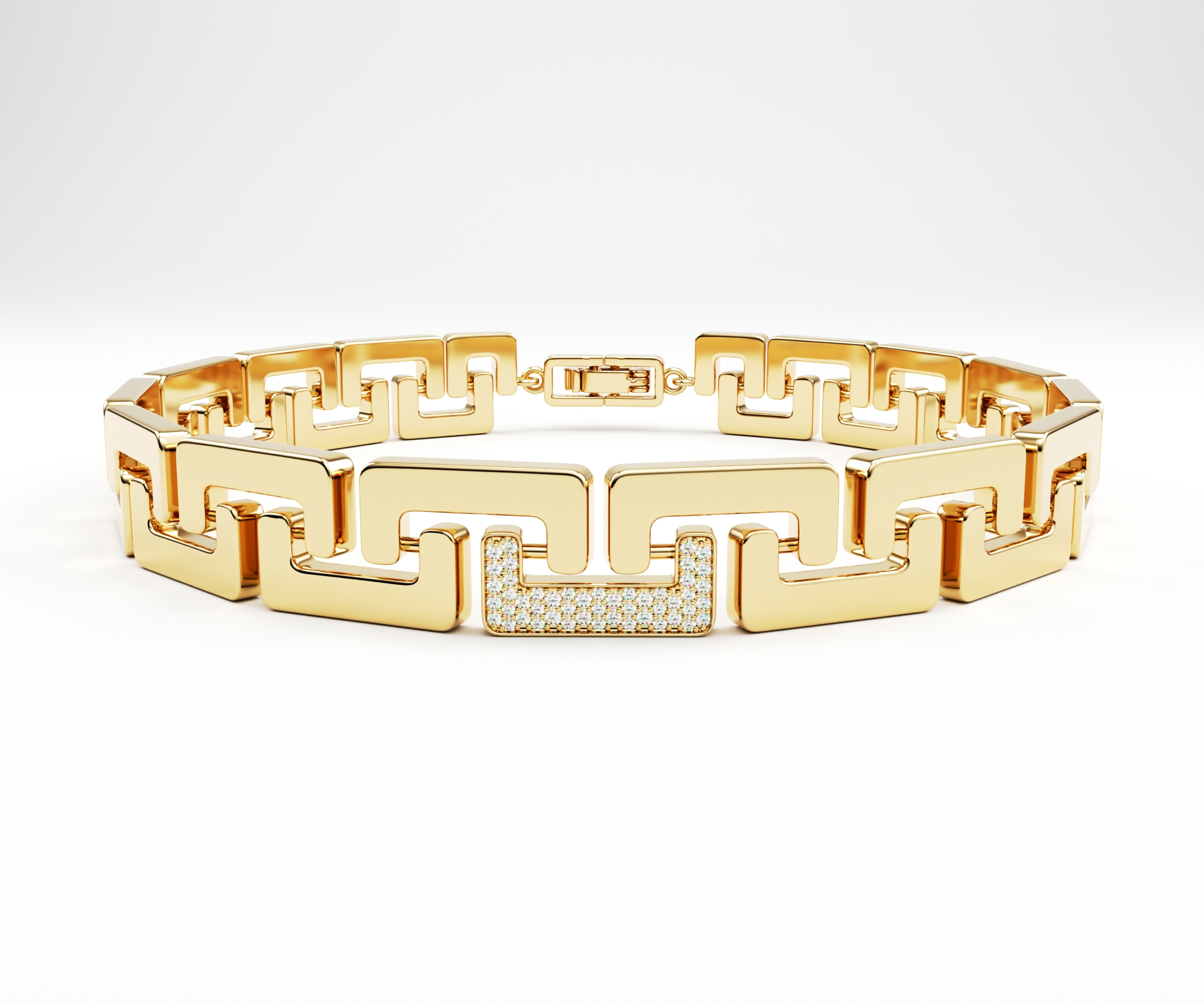 Bangle Nexus is a bold architectural bracelet crafted in 18k gold, articulated through geometric links and highlighted with a diamond-set central element.