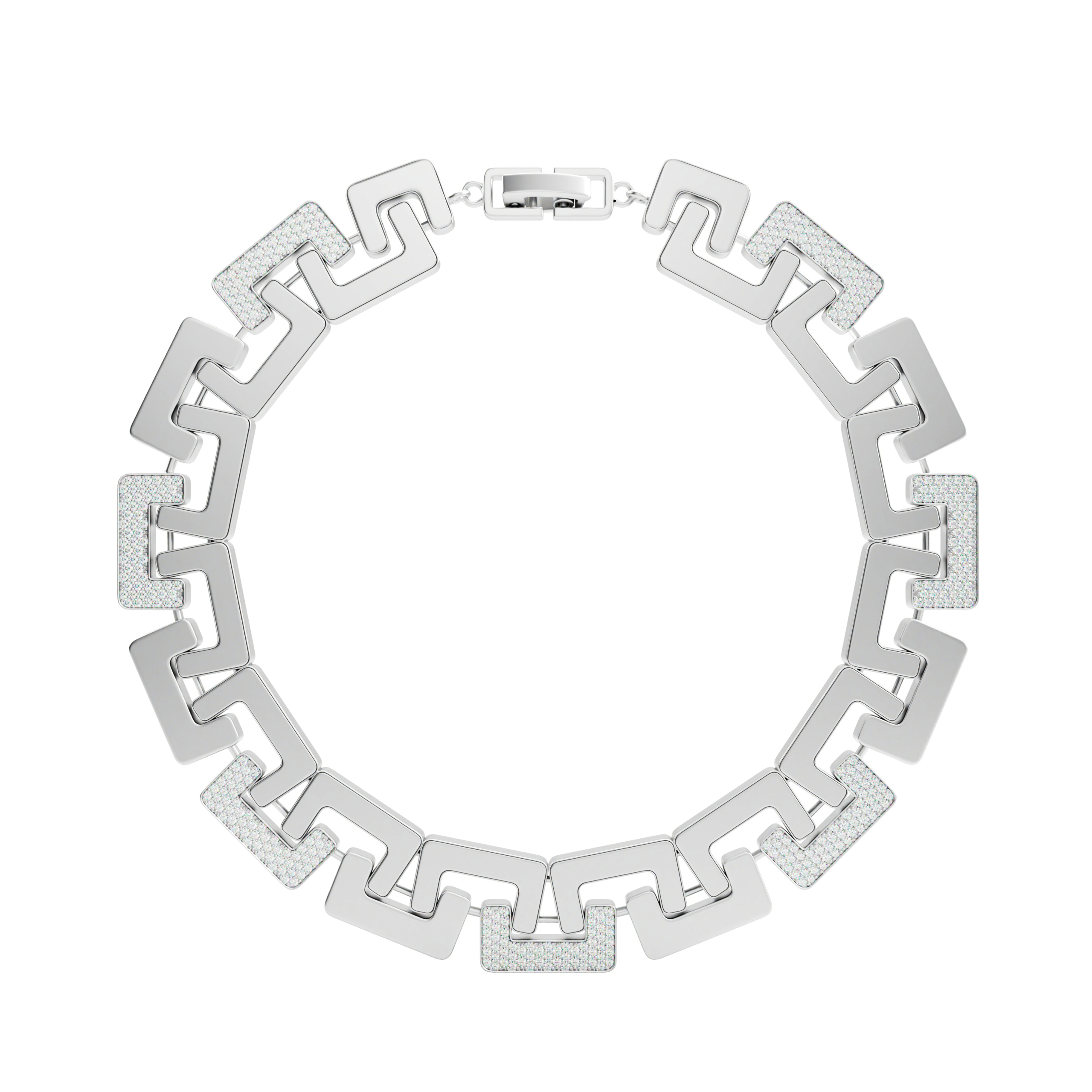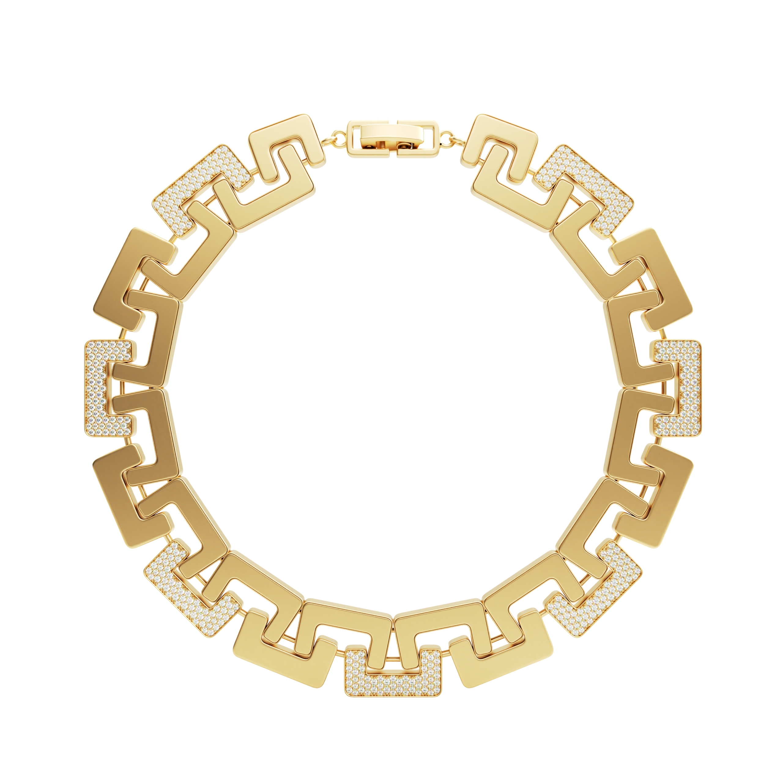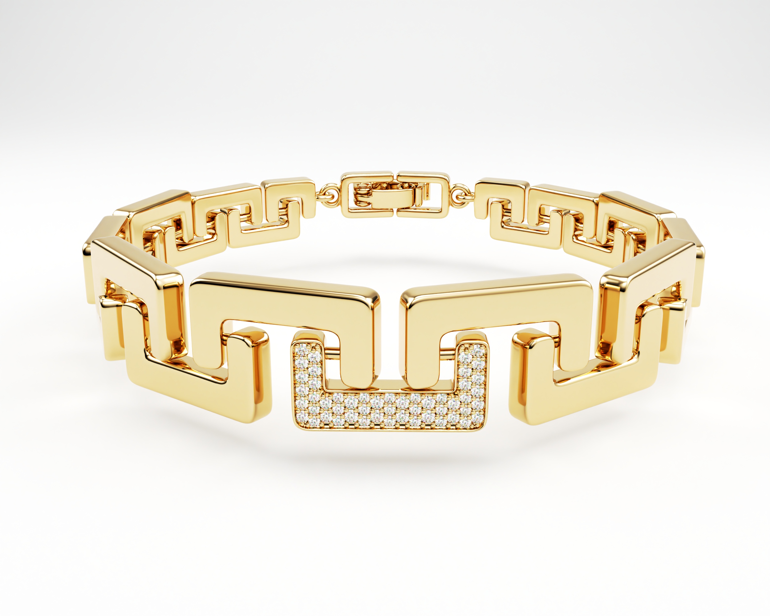 Bangle Nexus is a bold architectural bracelet crafted in 18k gold, articulated through geometric links and highlighted with a diamond-set central element.