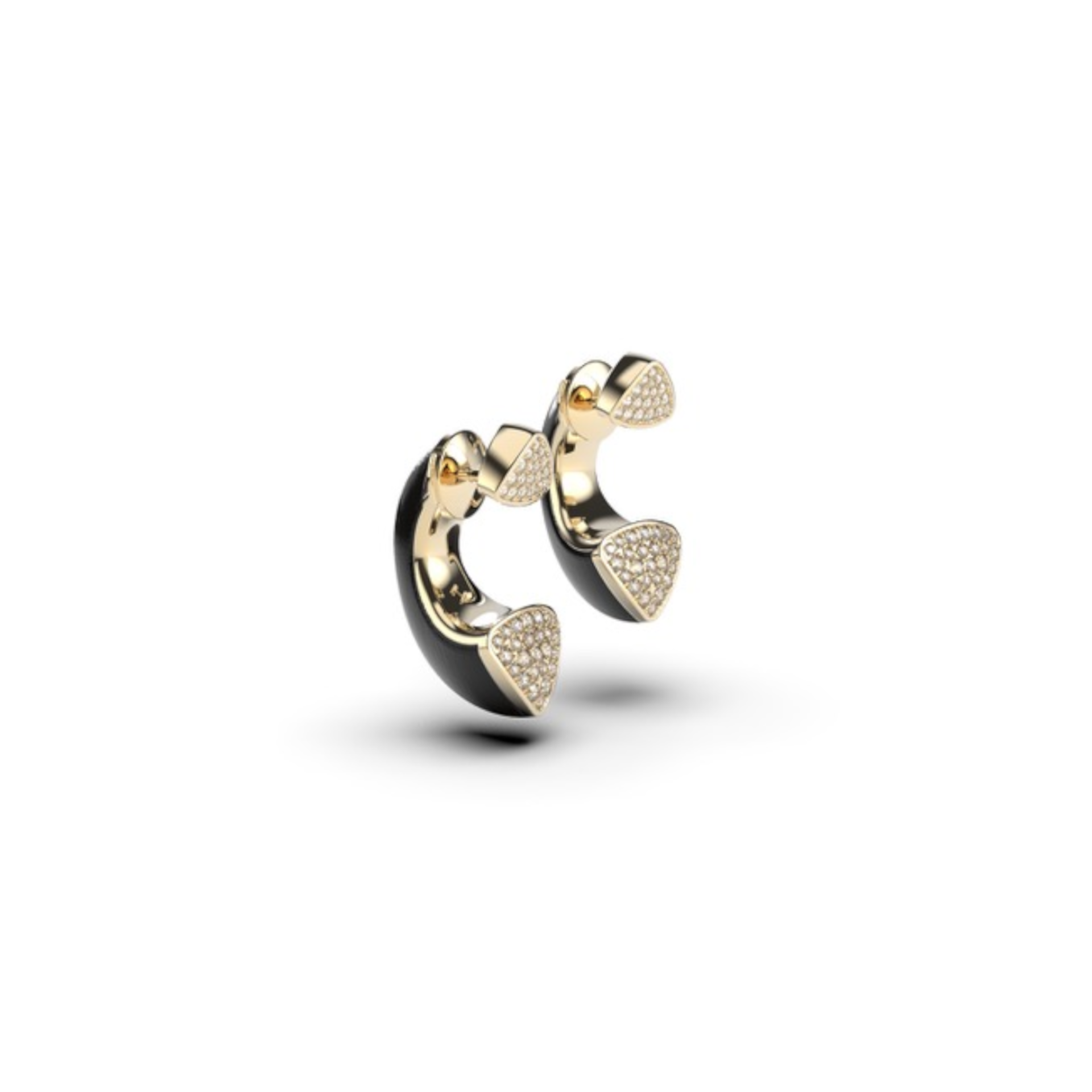 Double earrings in gold, ebony wood and diamonds encrusted.