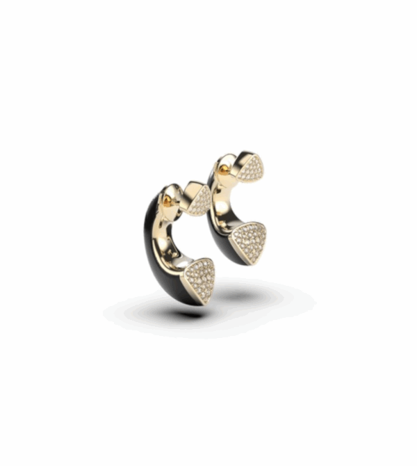 Earrings in gold and ebony wood, Gold and ebony wood pendant. This volute-shaped earrings features finely polished shells with a chiselled openwork back.
