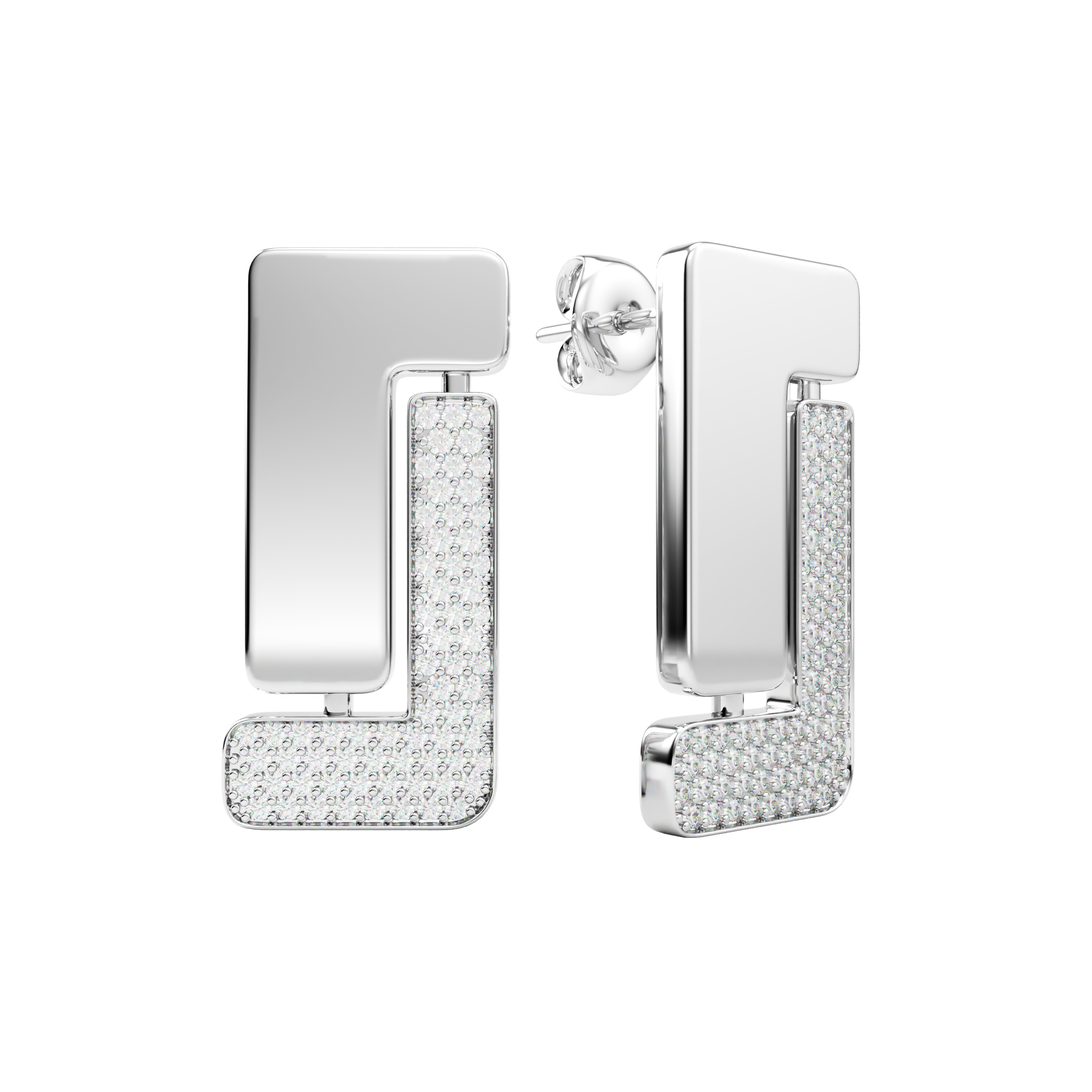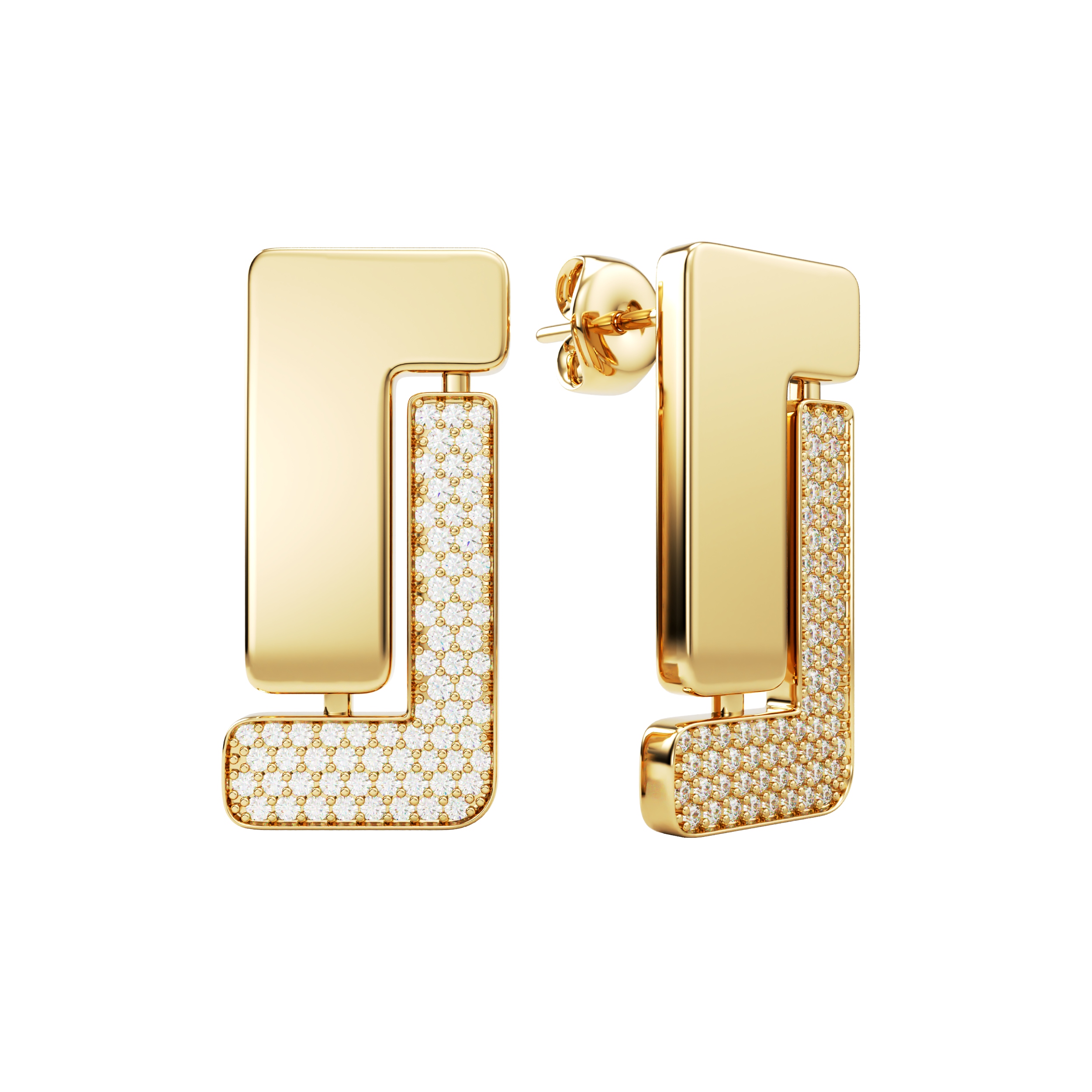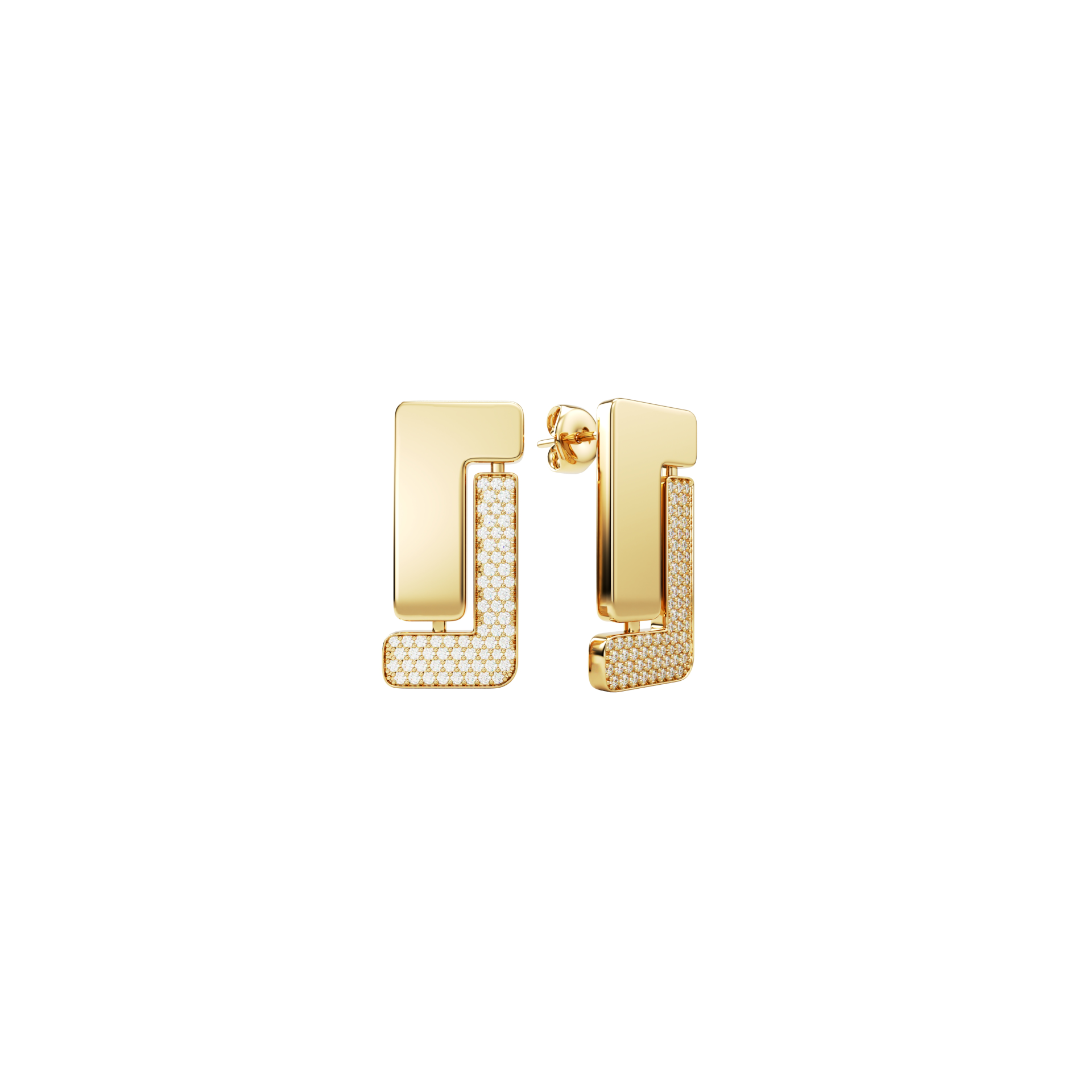 Nexus Solitaire earrings in 18k gold, defined by a bold architectural line set with pavé diamonds.