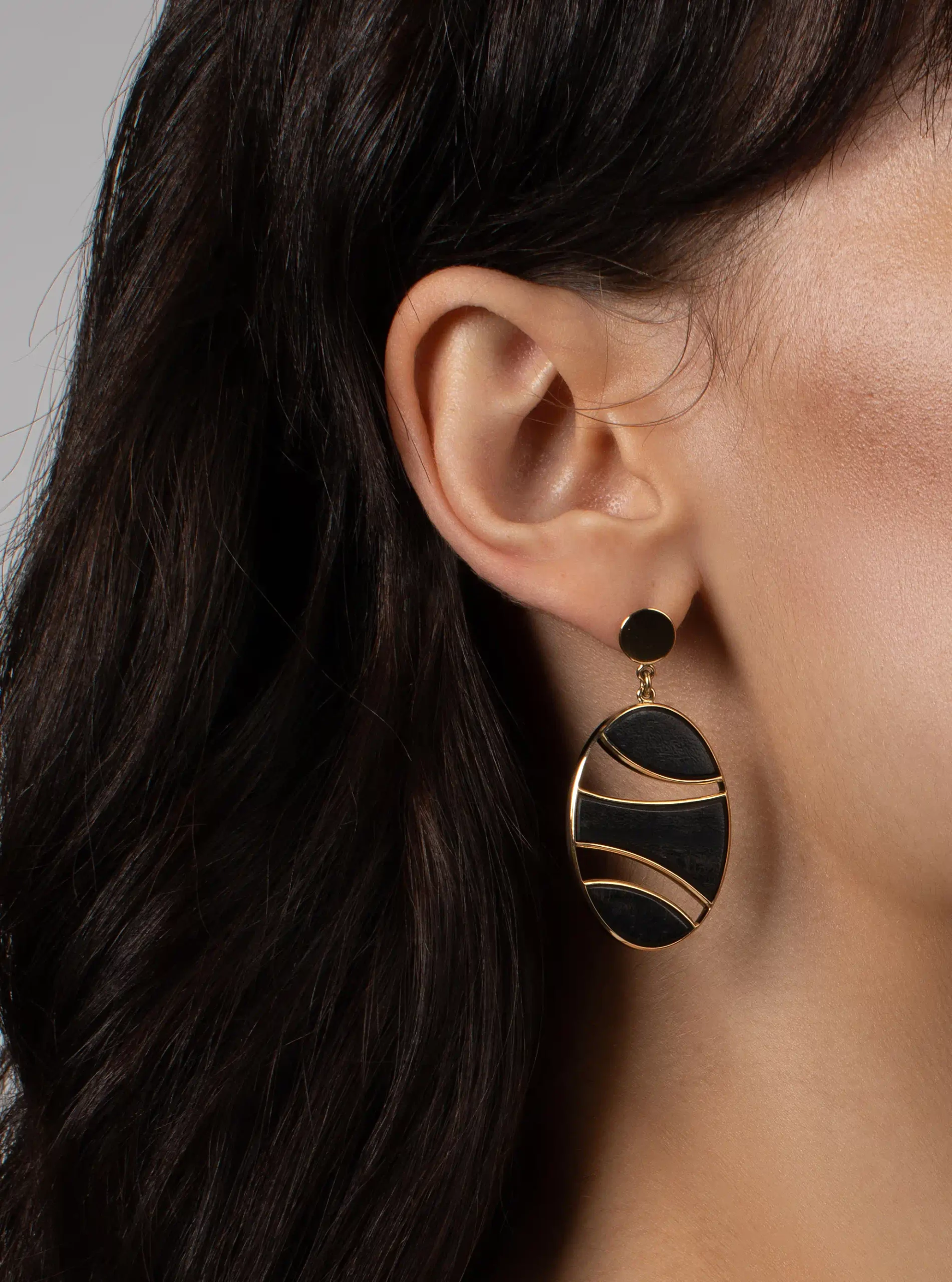 Earrings in gold and ebony wood,