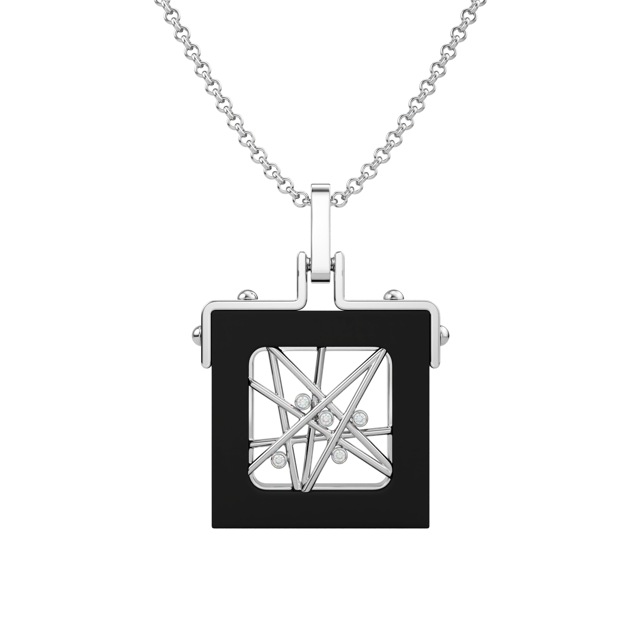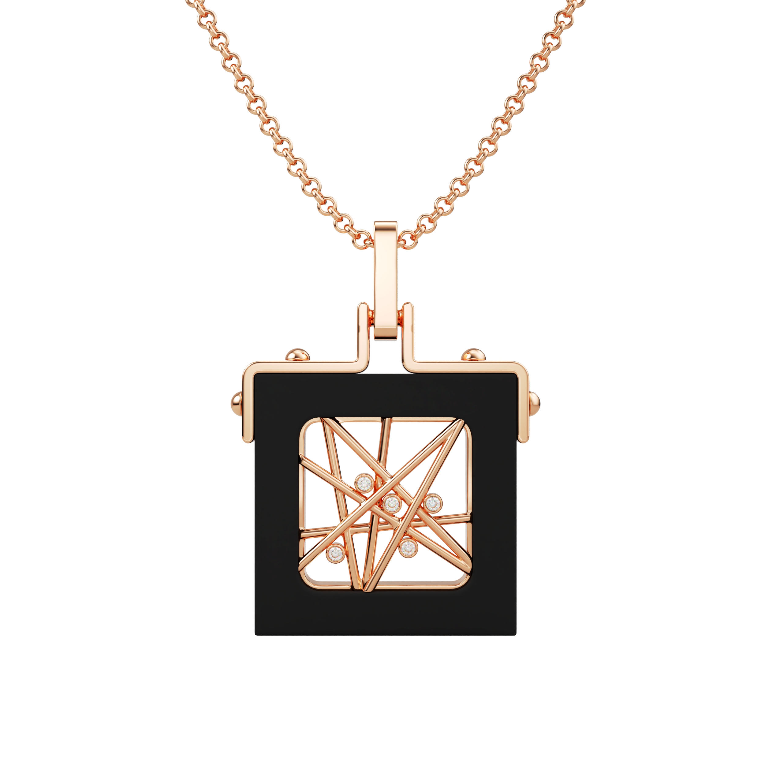 Ebony wood pendant  in gold, ebony wood and diamonds.