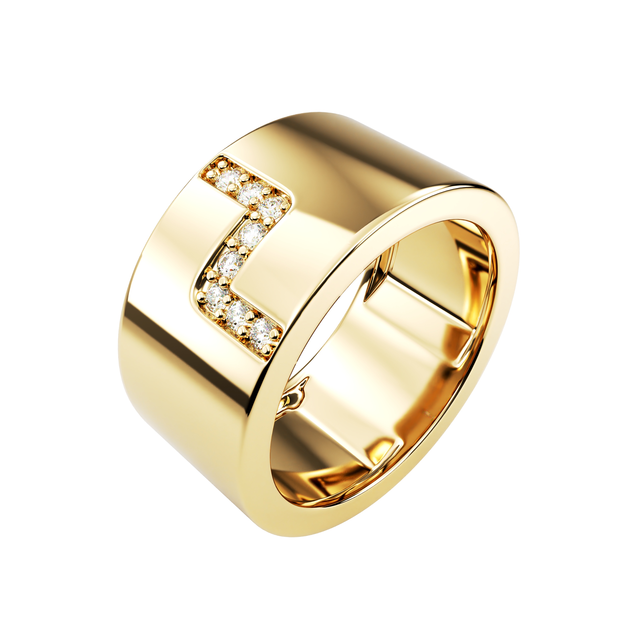 Ring Nexus Line is a bold gold ring defined by a clean architectural line, set with precisely aligned diamonds.