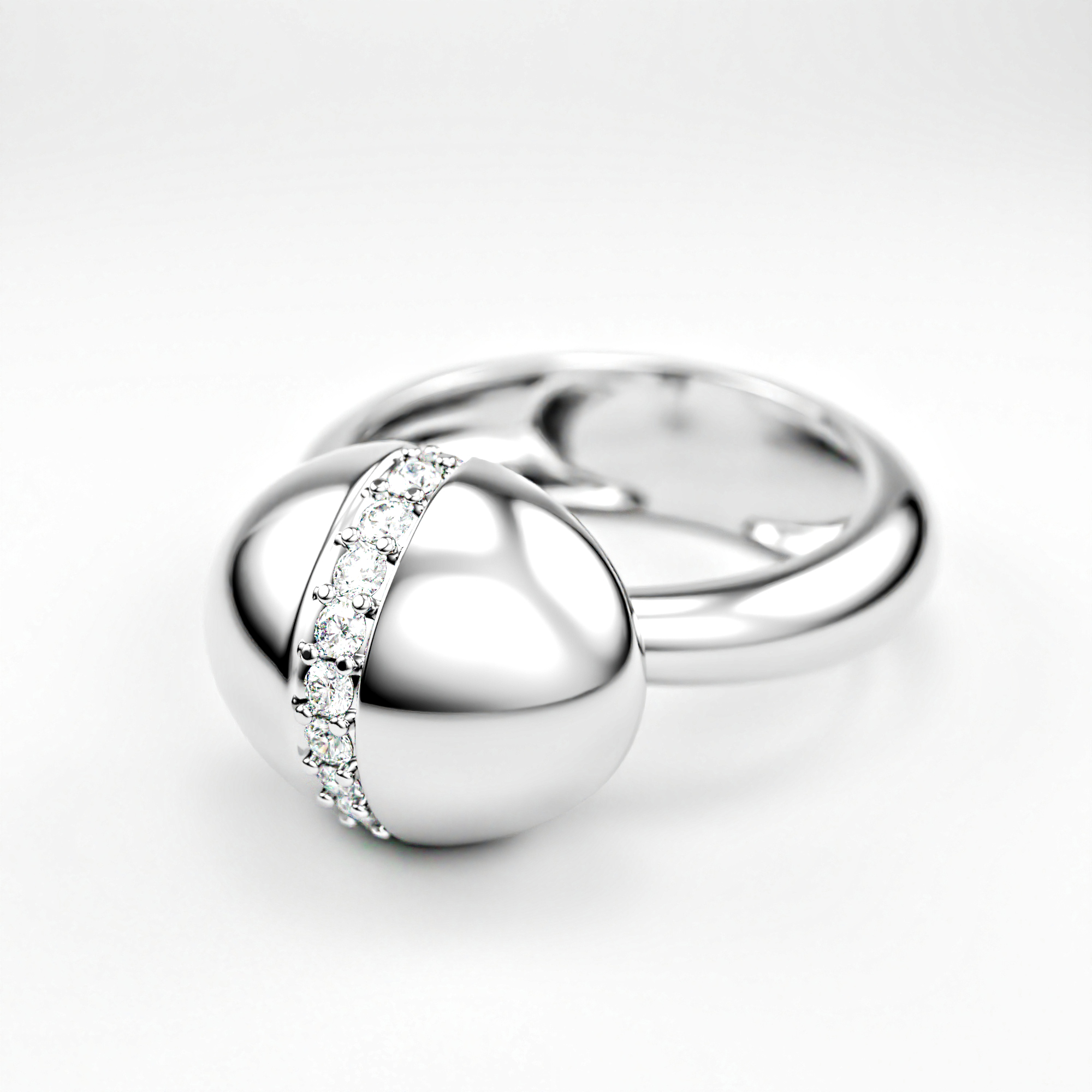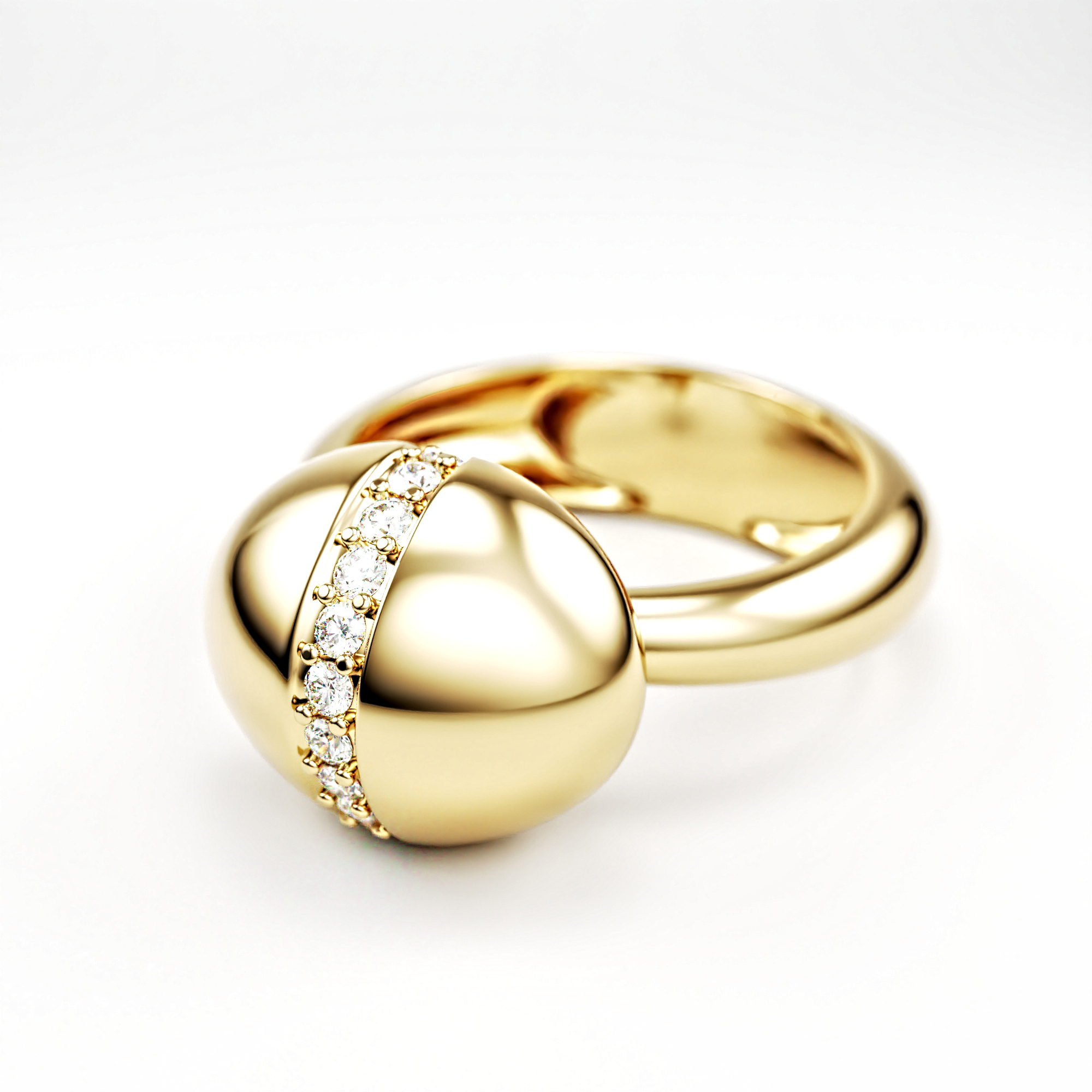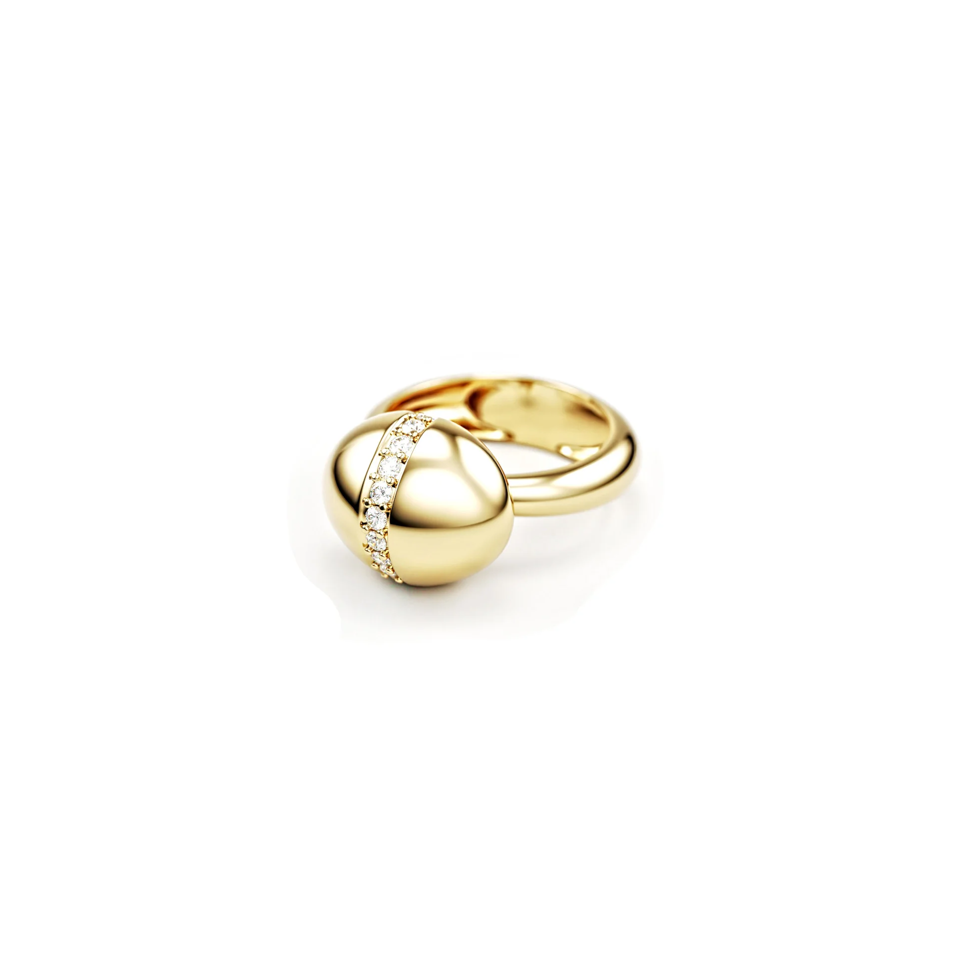 Ring Ondée in 18k gold, defined by a soft, sculptural volume and a pavé-set diamond line.