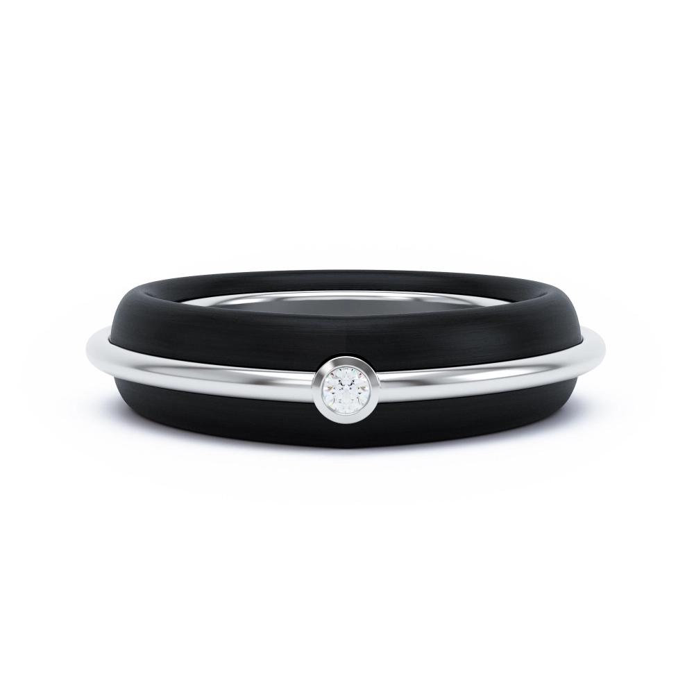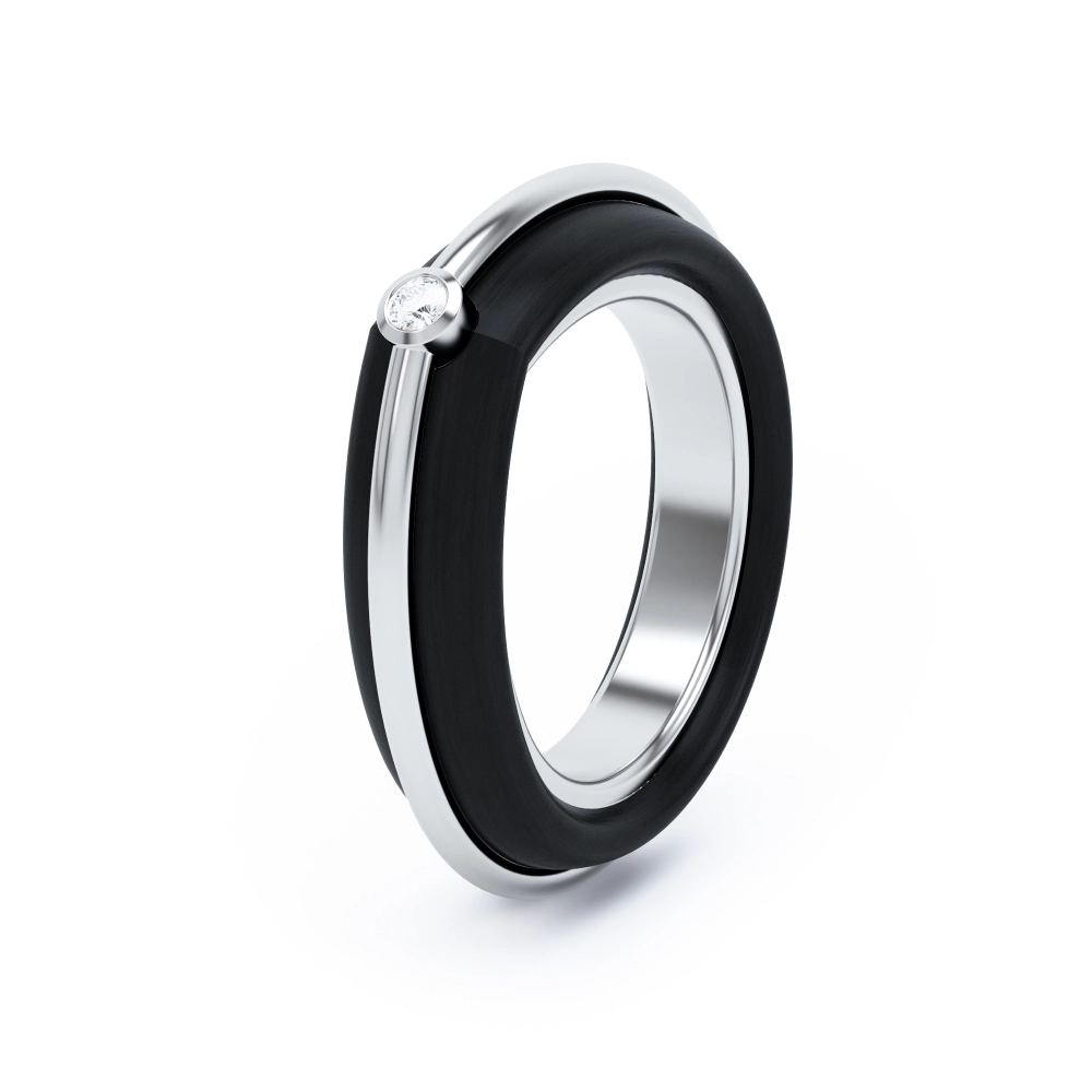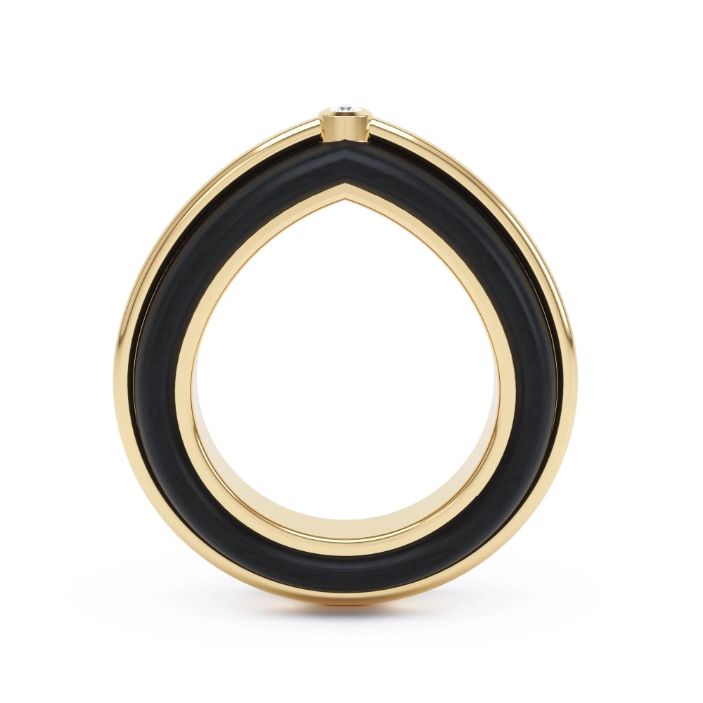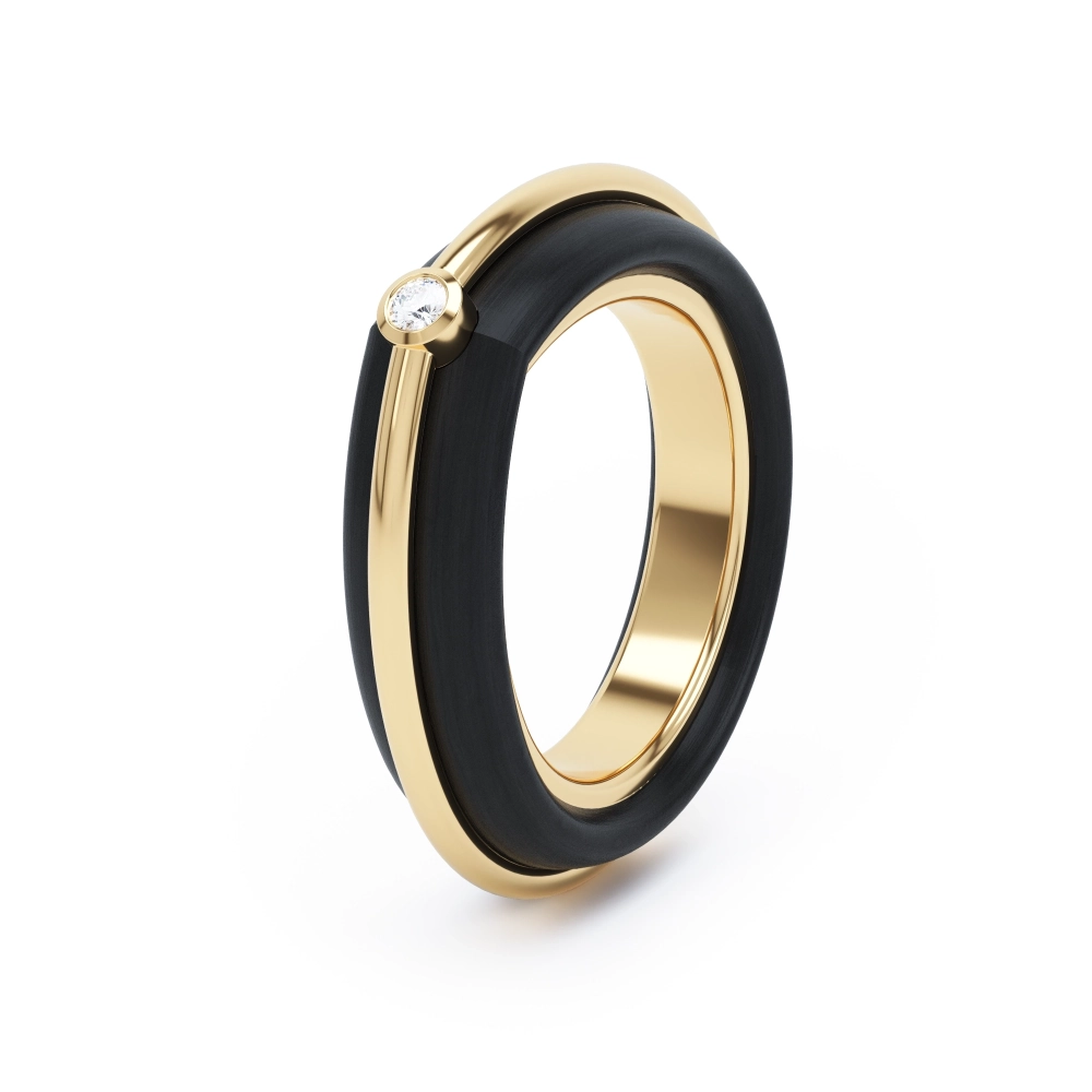 Ring in 18k gold and ebony wood with a solitaire diamond.